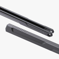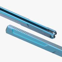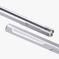 These premium handles are milled from a single piece of 6061 hard coat anodized aluminum and are available in multiple color options. We smoothed out the sharp edges and dialed in the milling for better fitment. The handles are optimized for proper balance with a bit of added girth and length. We also added jimping for improved laddering while flipping. Stainless steel washers are included to set against the aluminum so your bearings are riding against steel for that smooth action. This model features a latchless design. With the handles installed, the knife weighs in about 4.65 oz.