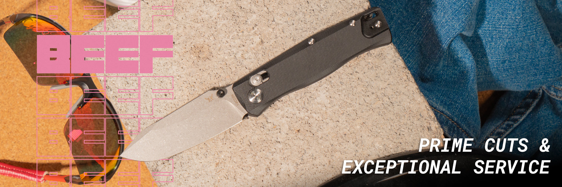 Introducing the BEEF™ - a quarter pound of solid knife. Dependable like your local dive bar or a backyard burger, it might not be anything fancy but it gets the job done. The BEEF™ is comfortable in your hand, and ready for anything you throw at is. Backed up by the new BITS warranty and replacement parts at cost, you can use your knife worry free.