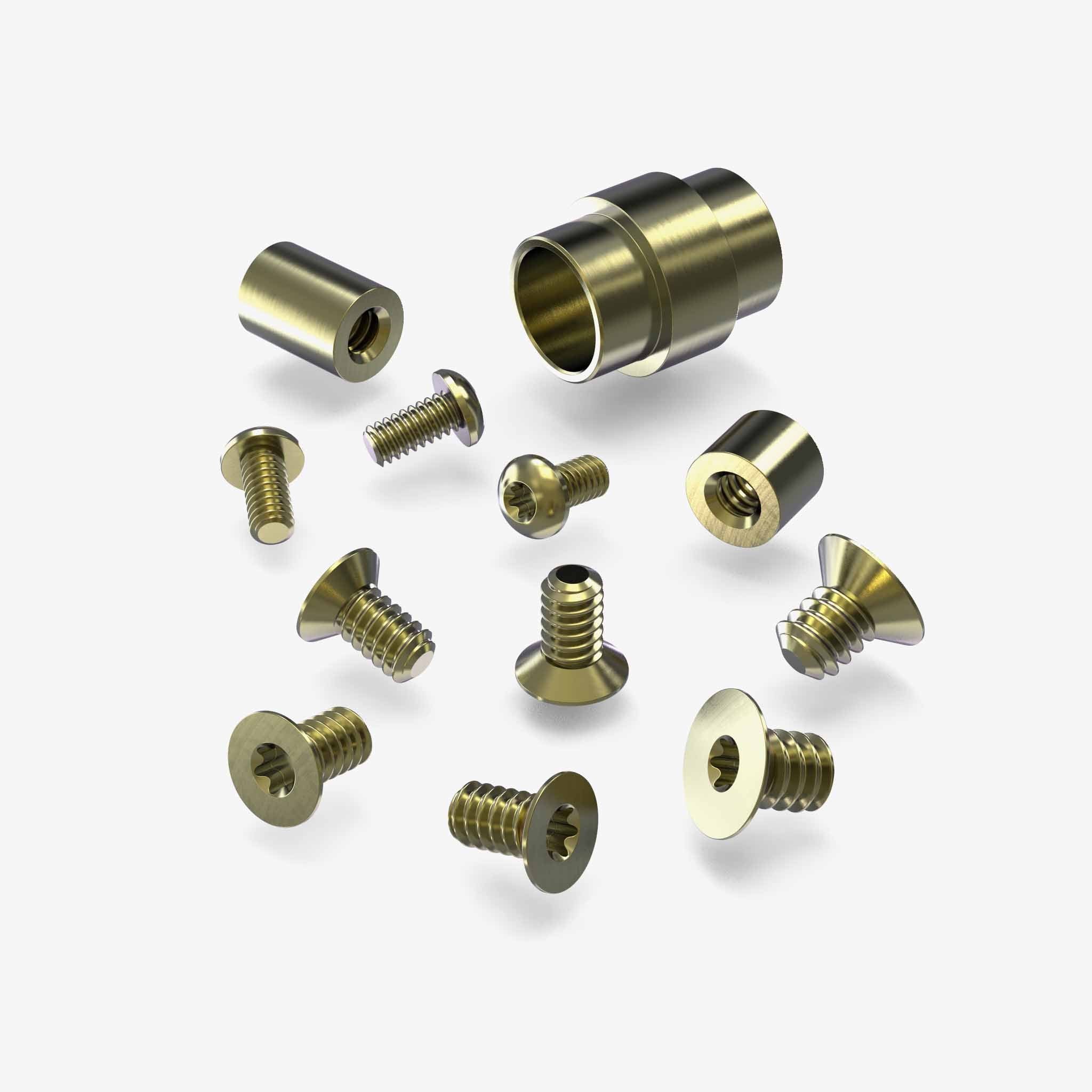 Our full hardware kit includes everything you need to replace all visible hardware on your knife: Pivot Screws, Body Screws, Pocket Clip Screws, Threaded Stop Barrel, Barrel Spacer, and Lanyard Tube. The only stock piece this kit won't replace is the pivot barrel - steel performs better than titanium for this part and you definitely want to keep that drop-shut action! This hardware kit weighs about 0.11 oz.