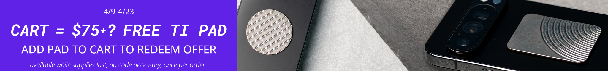 Add some grip to your favorite everyday objects with these textured Titanium Pads! The 3M adhesive keeps the pads secured and the four patterns let you customize with style. Use the different textures to provide a distinct tactile experience, we personally love Radial as a worry stone.